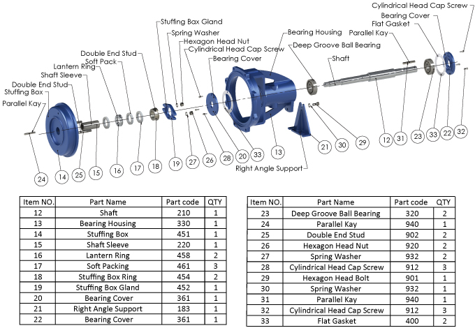 Horizontal, radially split volute casing pump in back pull-out design, with radial impeller, single-entry, single stage, to Factory Standard.