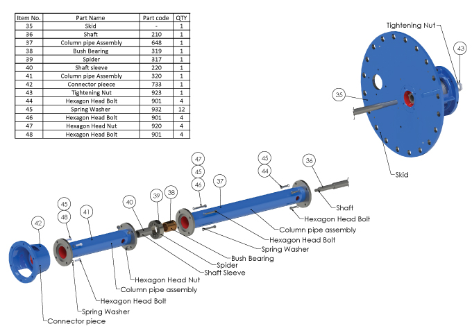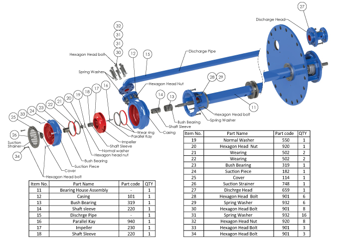 Vertical suspended, Line shaft, Single stage, Single flow, Radially split volute casing pump to API 610, 11th